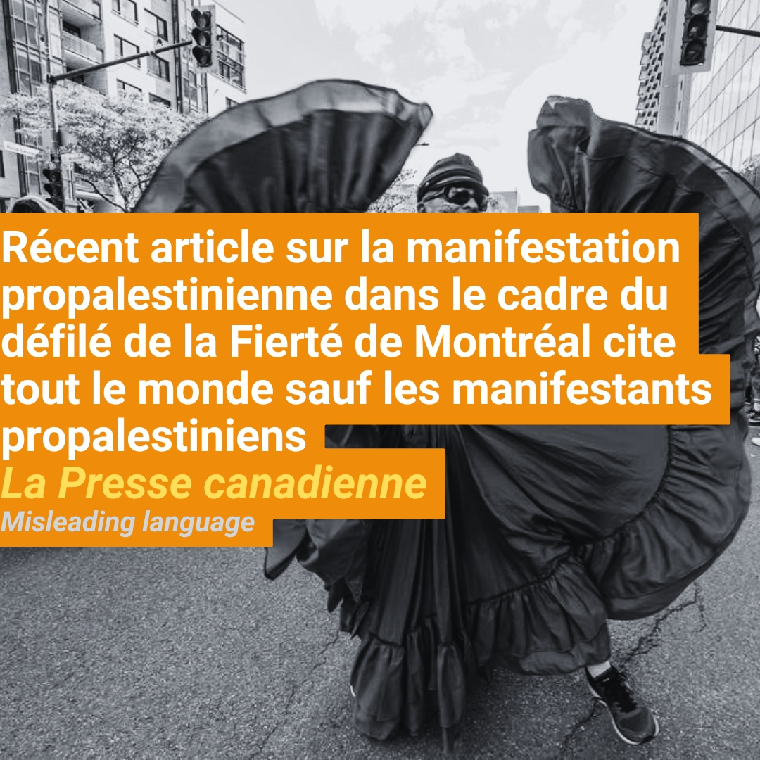 « Vous n’avez consacré qu’une seule phrase aux manifestants propalestiniens. Vous avez paraphrasé leurs motivations plutôt que les citer directement. Vous semez le doute quant au caractère fondé de leurs reproches en écrivant « selon eux ». Vous ne nommez même pas à quel groupe ils appartiennent. »