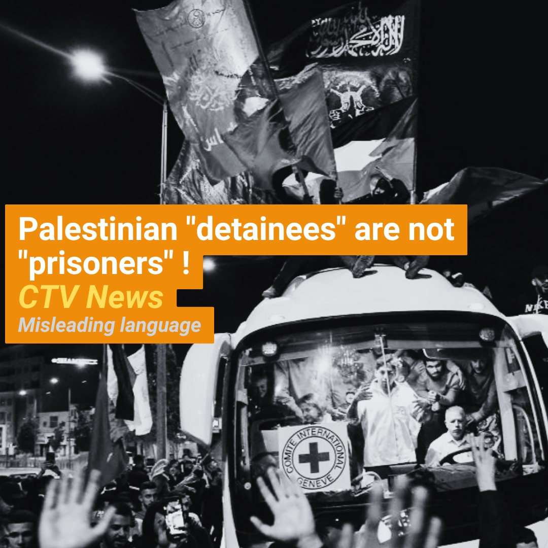 We respectfully urge CTV News to keep this distinction in mind and to clarify in your reporting that many Palestinians held in Israeli occupation prisons are detainees, not convicted prisoners. We also encourage you to include context about Israel’s policy of administrative detention so that viewers can better understand the legal and human rights abuses committed by Israel against Palestinians.