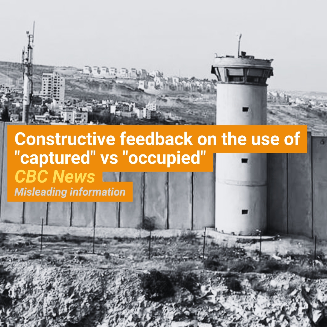 This is not the first time I have written to the Associated Press and CBC News about this issue. Referring to Israel’s occupation of Gaza, the West Bank, and East Jerusalem as “captured” rather than “occupied” is legally inaccurate. The International Court of Justice (ICJ)’s language is unequivocal: