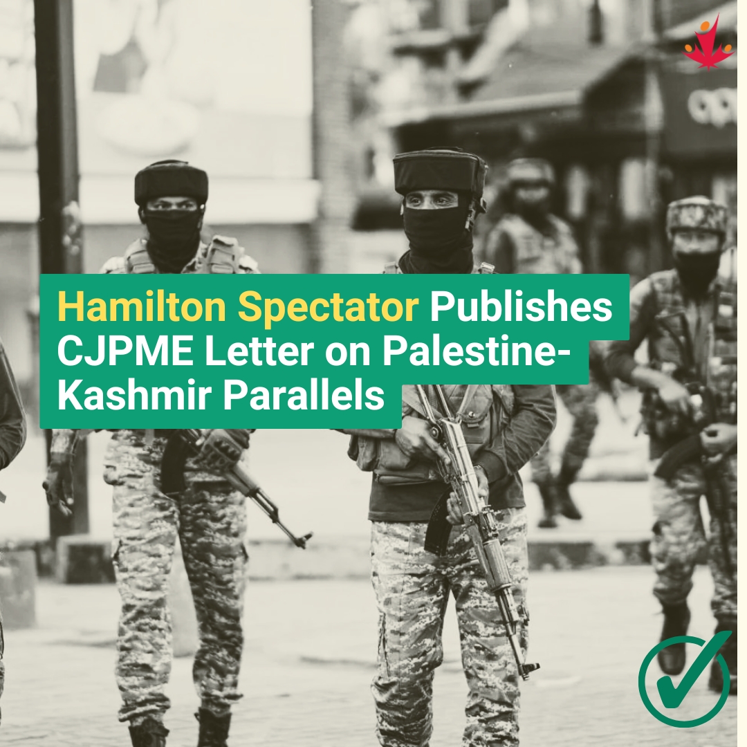 On May 14, 2025, the Hamilton Spectator published a letter to the editor by CJPME Media Analyst Anthony Issa in response to Gwynne Dyer’s column, “India and Israel are on parallel tracks.” While Dyer’s article introduced important comparisons between Kashmir and Palestine, CJPME’s letter expanded the conversation by challenging oversimplified portrayals of resistance and emphasizing the structural violence and settler-colonialism underlying both conflicts.