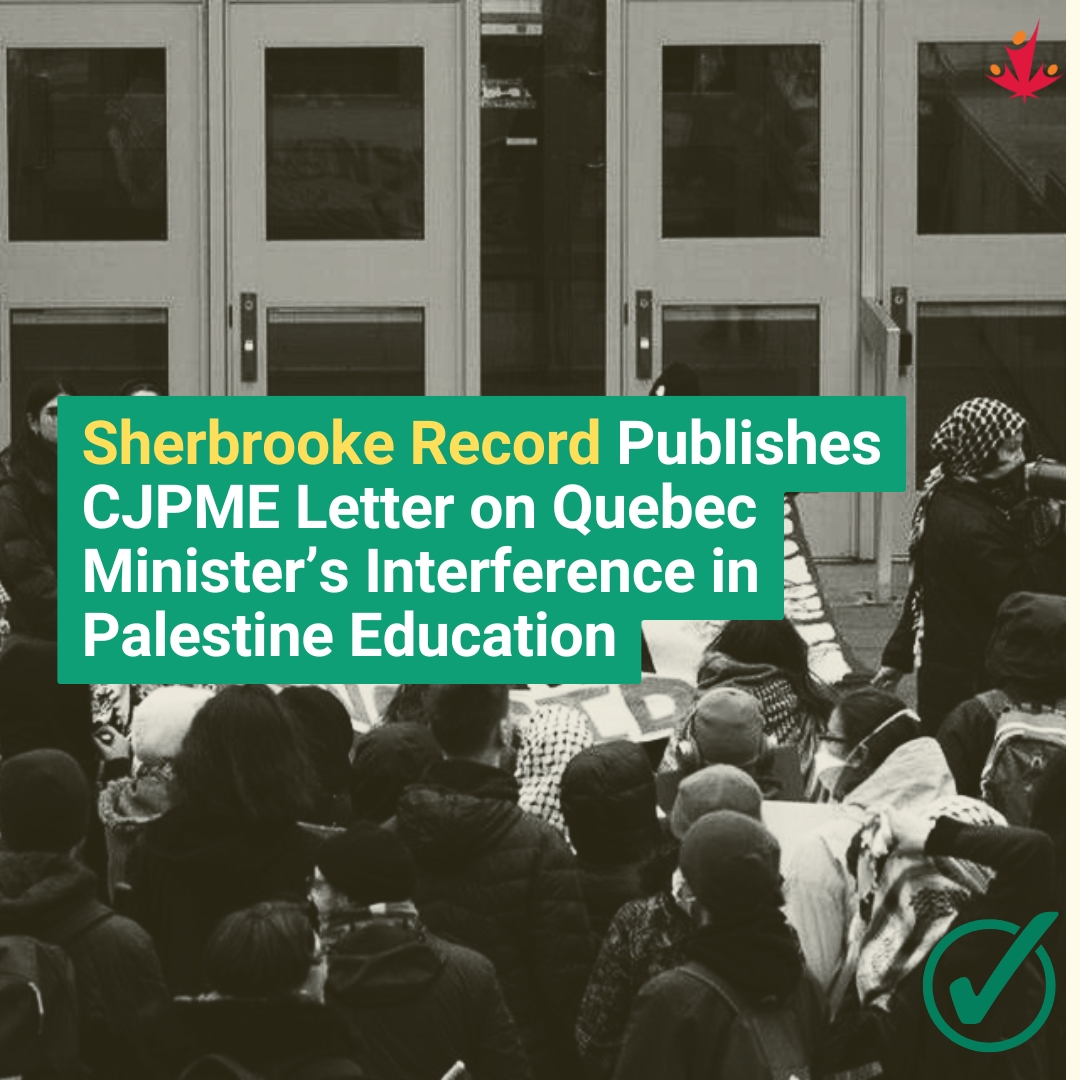 CJPME thanks The Sherbrooke Record for publishing the letter. It is important that media challenge political interference and defending academic freedom on Palestine.