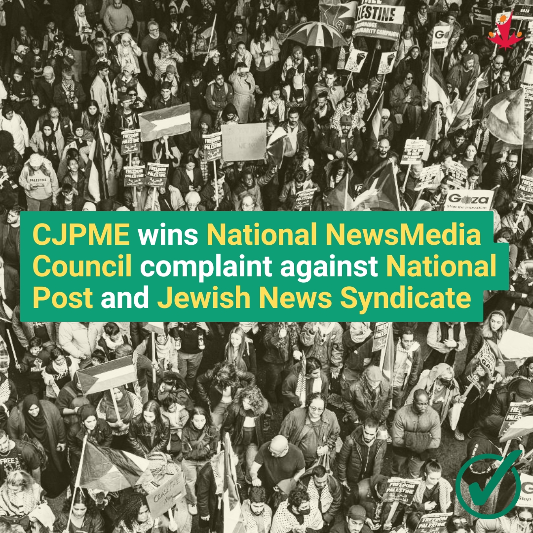 CJPME is alarmed that the National NewsMedia Council has, for the second time, acknowledged that JNS falls short of Canadian journalist standards, but continues to let the National Post off the hook for its role in deliberately spreading bias and misinformation.