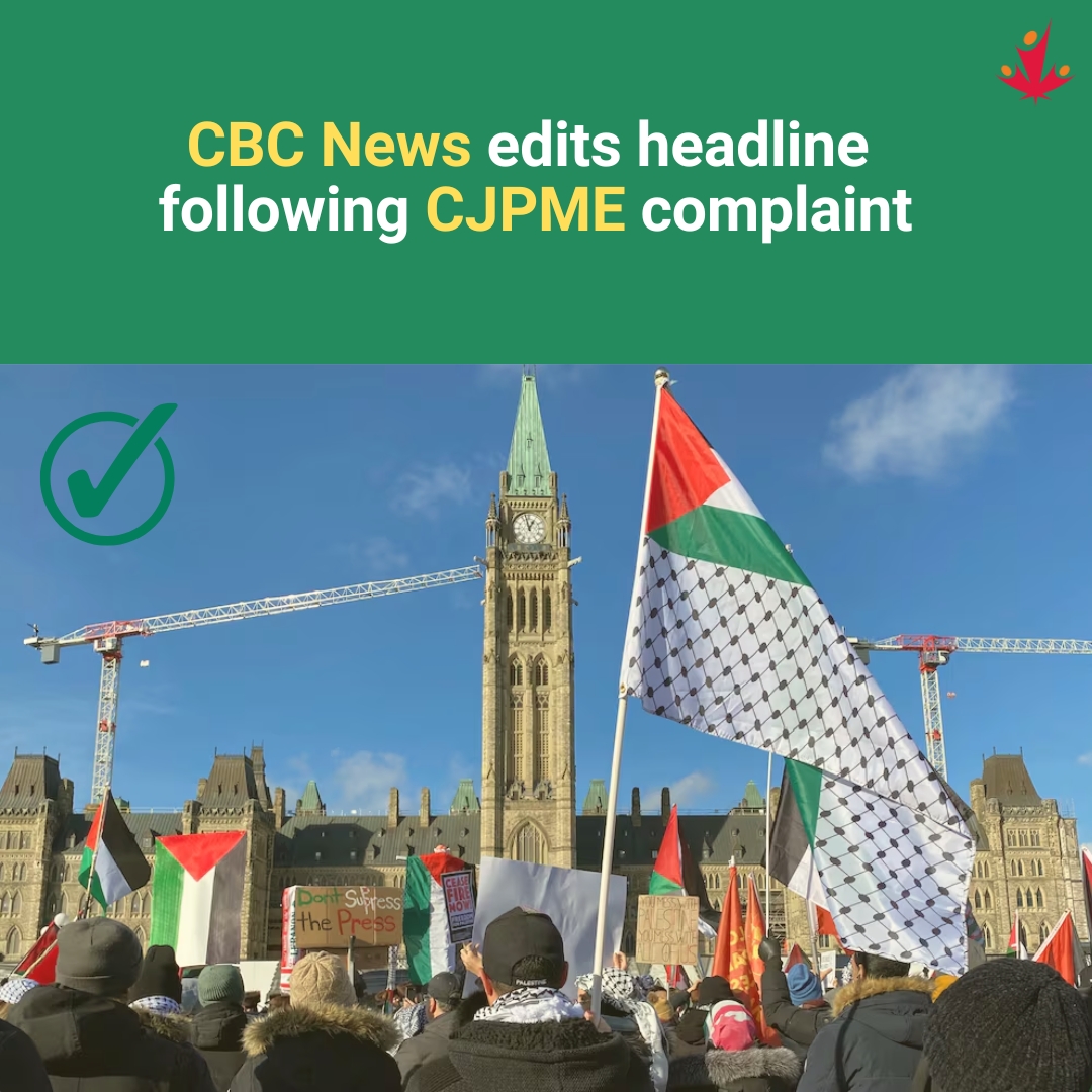 On March 11, CJPME learned that CBC News made corrections and additions to an article following a CJPME complaint. In an article about a Quebec court temporarily prohibiting protests near Jewish institutions in Montreal published on March 6, Sabrina Jonas and Isaac Olson wrote the following: