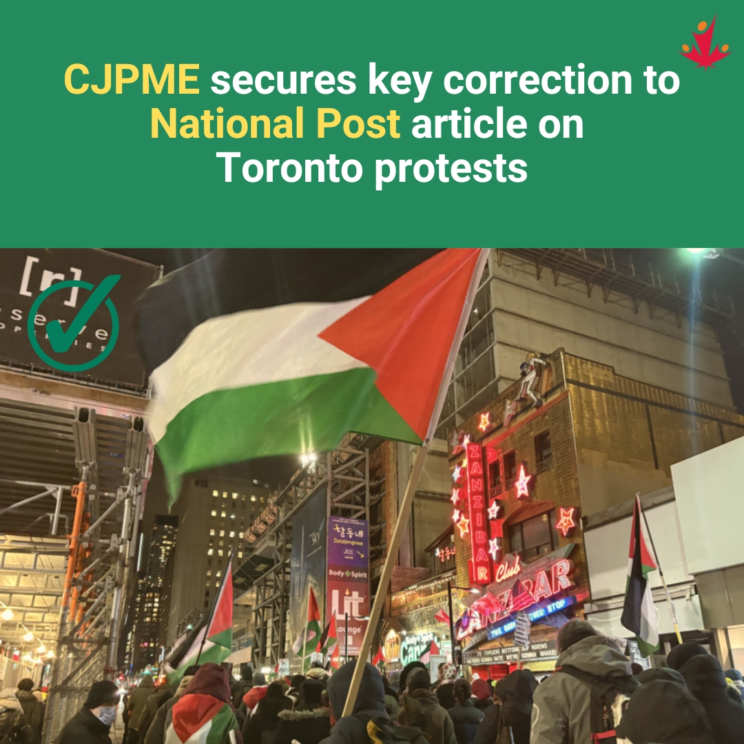 2026-03-31 CJPME secures key correction to National Post article on Toronto protests