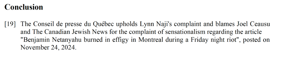 In a landmark decision, the Quebec Press Council upheld CJPME’s complaint, ruling that CJN engaged in “sensationalism” by exaggerating reality and wrongly suggesting broader antisemitic behaviour among pro-Palestine demonstrators.